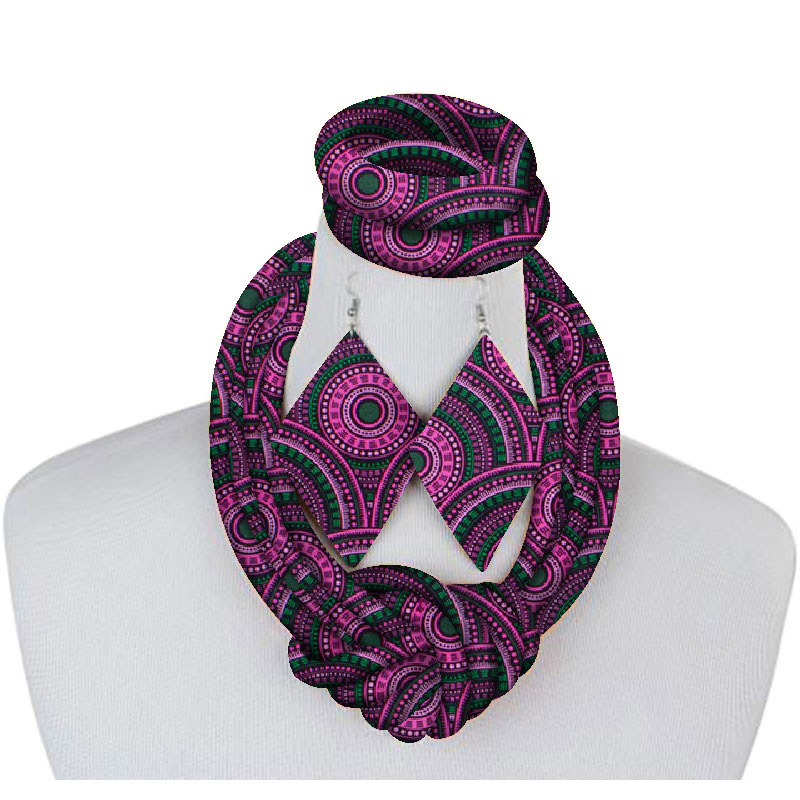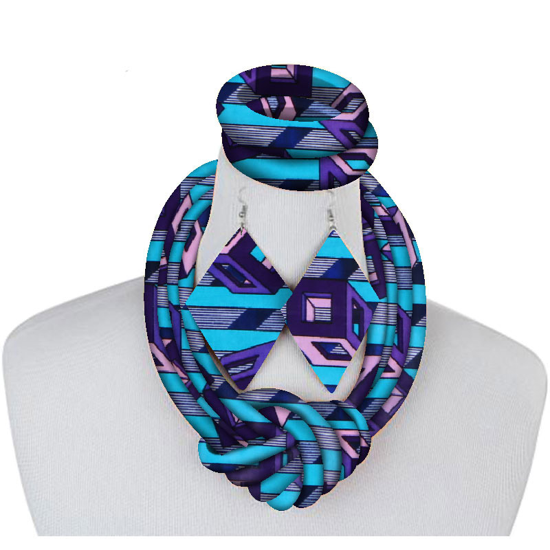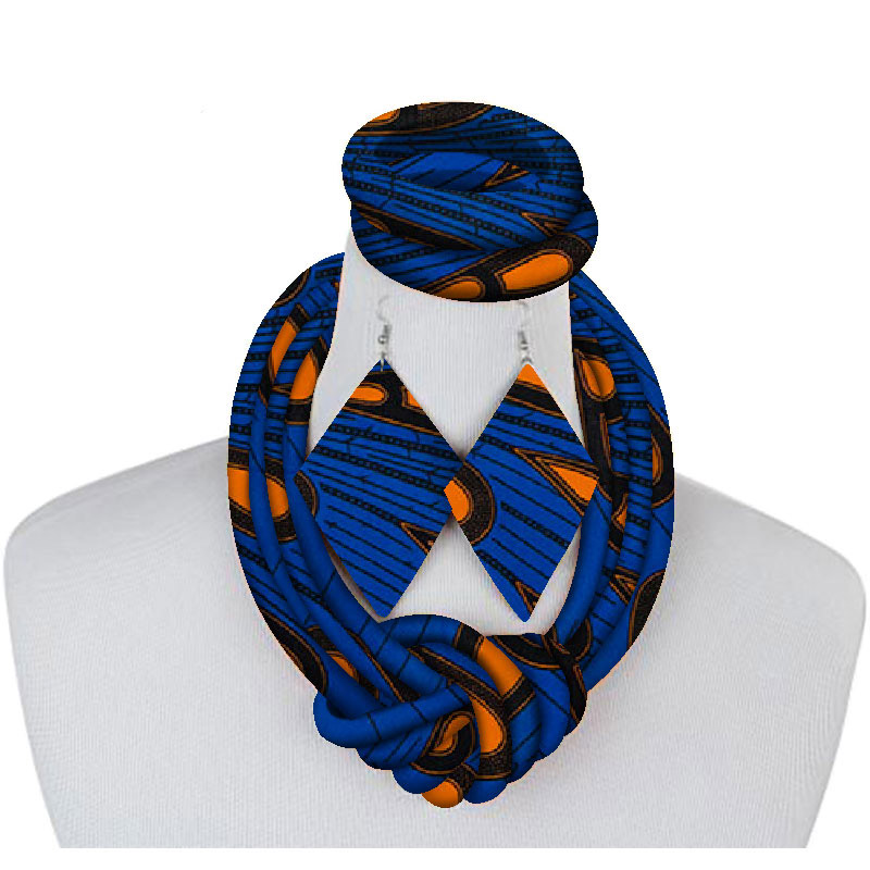 China wholesale African Bazin Rich Headwear - African Print Wax Ankara Fabric Set Necklace,Bracelet and Earrings 3 Pieces SP083 – AFRICLIFE