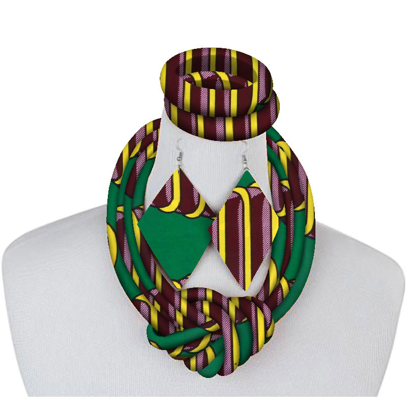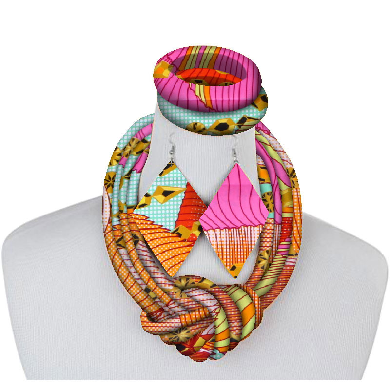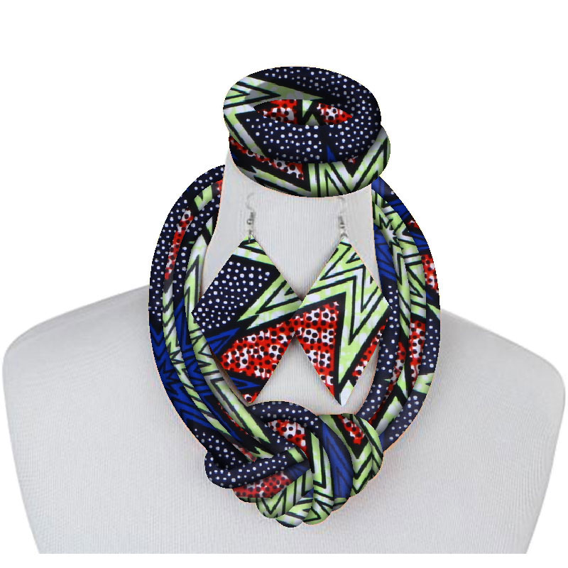 African Print Wax Ankara Fabric Set Necklace,Bracelet and Earrings 3 Pieces SP083