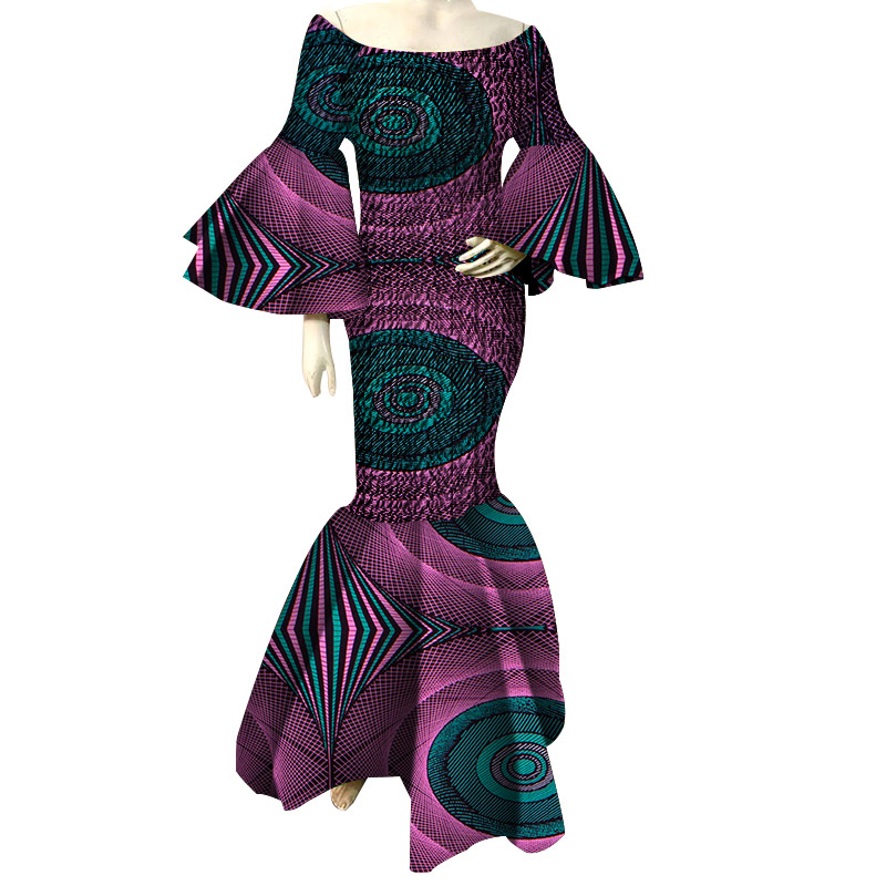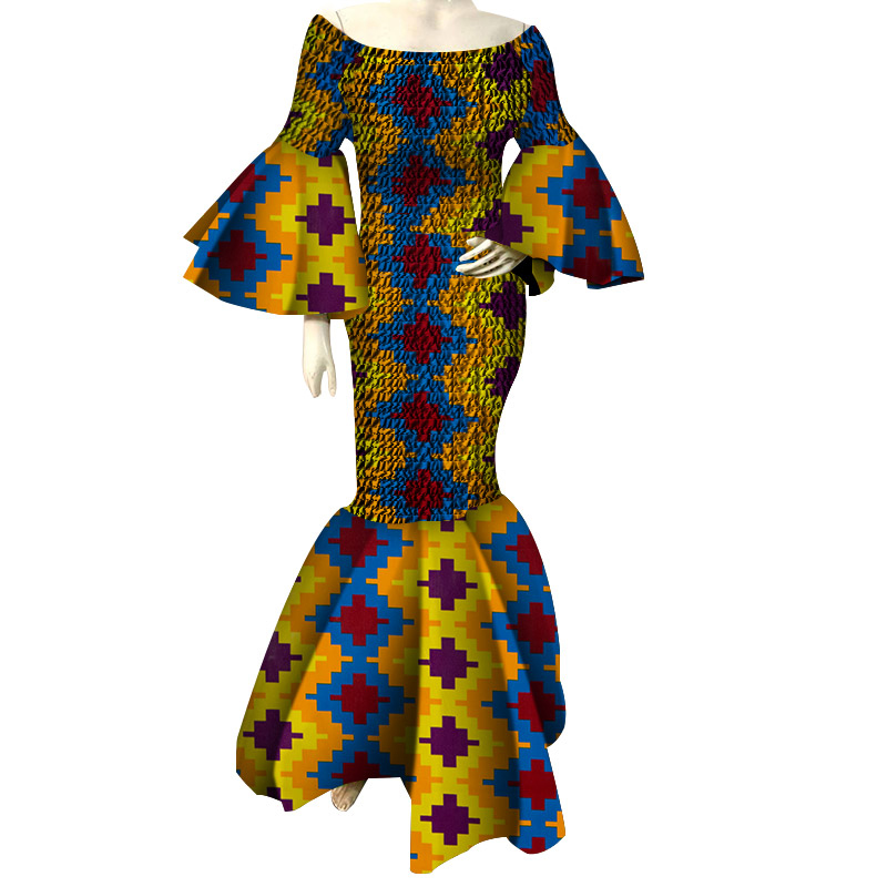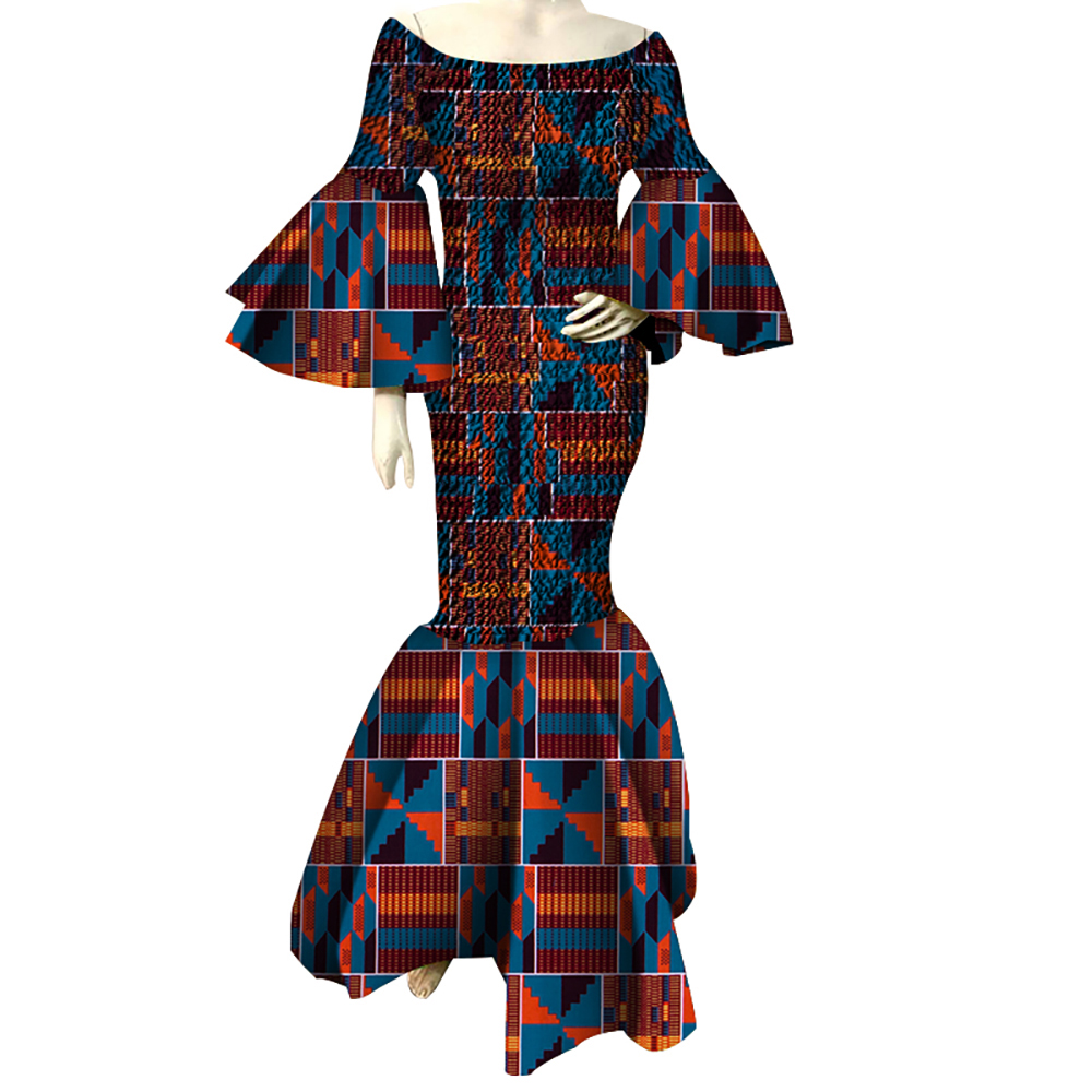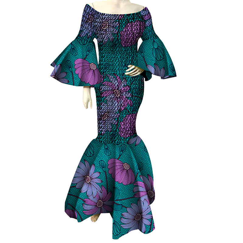 African Dresses for Women Print Ruffles Sleeve Long Bazin Riche African Ankara Clothing WY4303