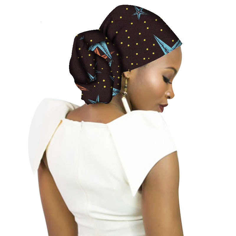 The African headscarf is usually wrapped with winding cloth to cover the hair, which is not only convenient for daily work, but also plays a role in shading, keeping warm, protecting the head and beautifying the image.The choice of various patterns of cloth, gorgeous colors, rich groups, bold lines, strong sense of design, so that the scarf is not only generous and beautiful, but also conspicuous. At the same time, the bright colors and dark skin form a sharp contrast, full of rich decorative beauty, become an indispensable fashion symbol in Africa.