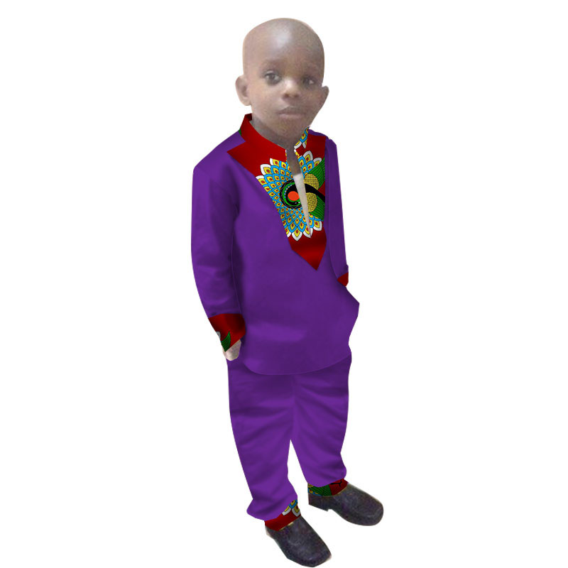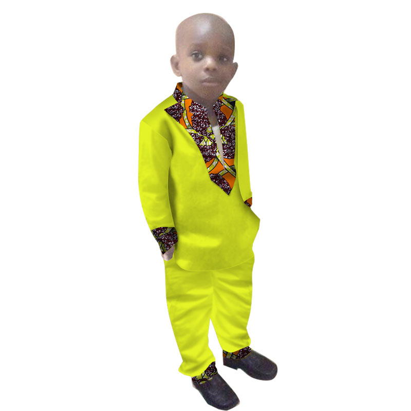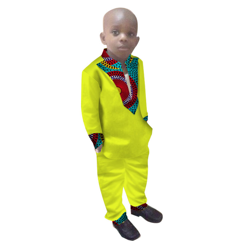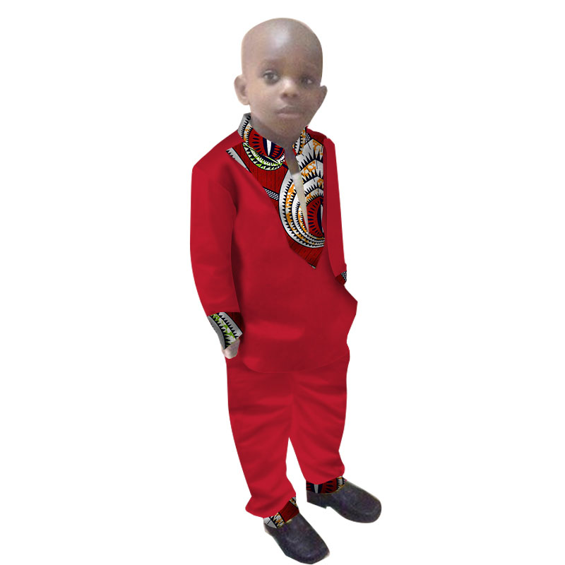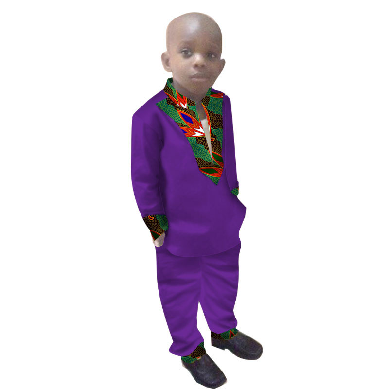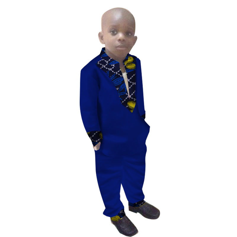 African Dashiki Kids Clothing with Long Sleeves Plus Solid Color Long Pant for Boys WYT108