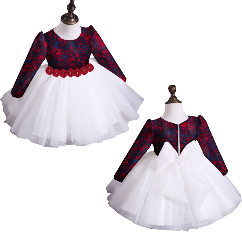 The long sleeve hubble-bubble sleeve design, increase the sweet breath, play outside more convenient, also a circle of the effect of a modified face will also be able to stretch the neck proportion, the design of tall waist is very thin,joining together in the waist, we join the same color of flower decoration, deserve to go up behind the veil big bowknot, proper personality ornament, fresh and tender and nifty sweet.Layer upon layer overlay skirt of bitter fleabane bitter fleabane that builds a pretty nifty, fair maiden temperament, good at in the spring and autumn season shaping clad mix build, single match or wearing very give prize, aim at the characteristic of children and lively, increase the colour of bright and lovely style design, let children wear more comfortable and more beautiful with excellent quality for each child to build perfect experience.