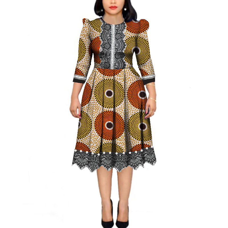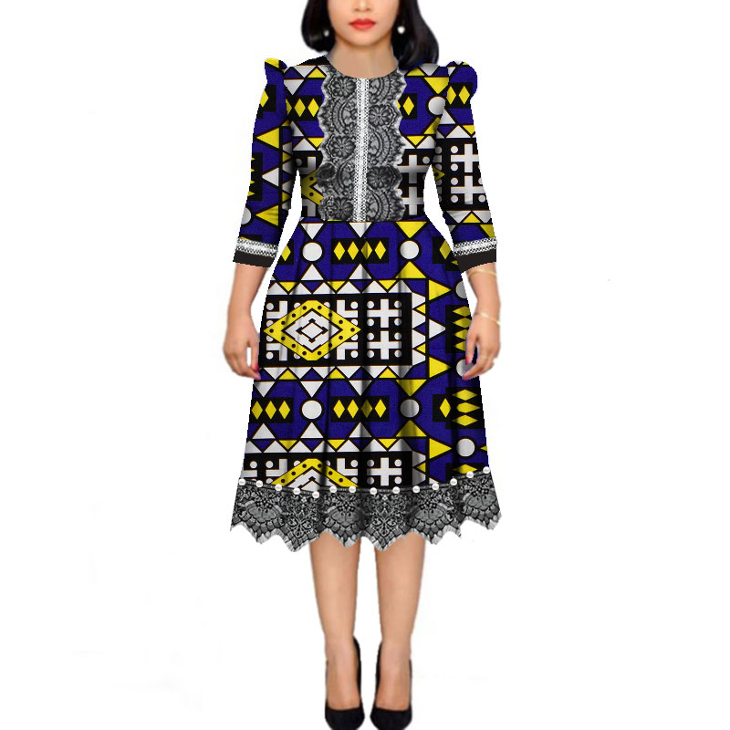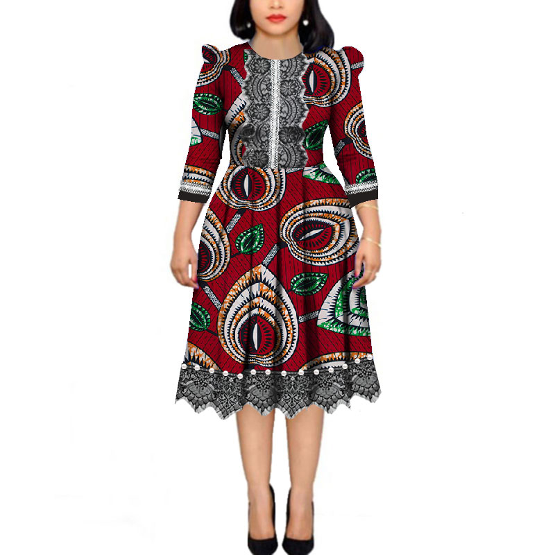 Manufacturer of African Funeral Attire - African Pearls Bazin Riche Wax Print Patchwork Dresses Dashiki African Style Long Sleeve Dresses WY4339 – AFRICLIFE Detail: