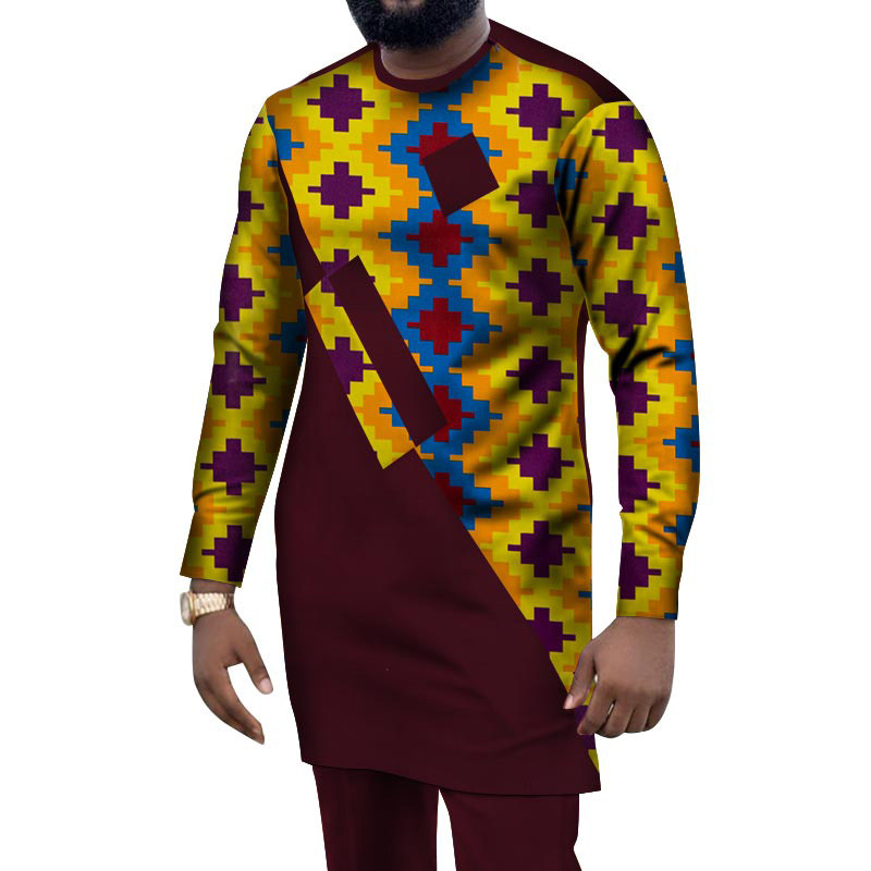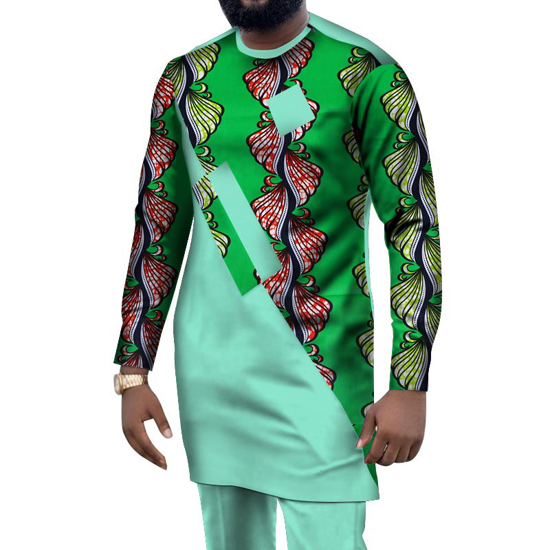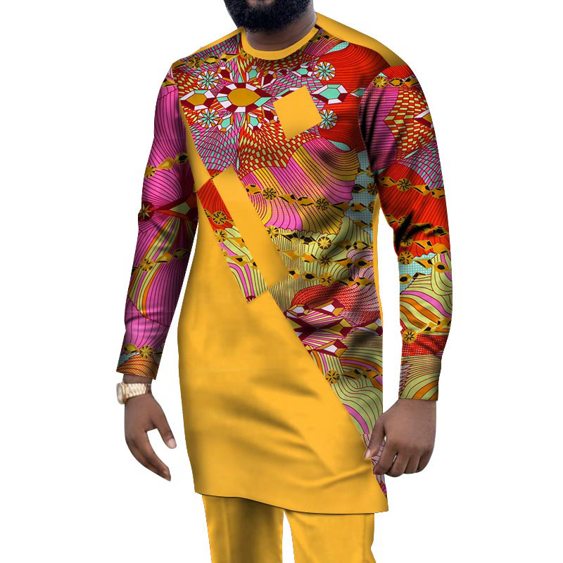 2021 African Men Suits Set Dashiki Clothing Print Shirts Tops+Long Pants with Pockets WYN1004