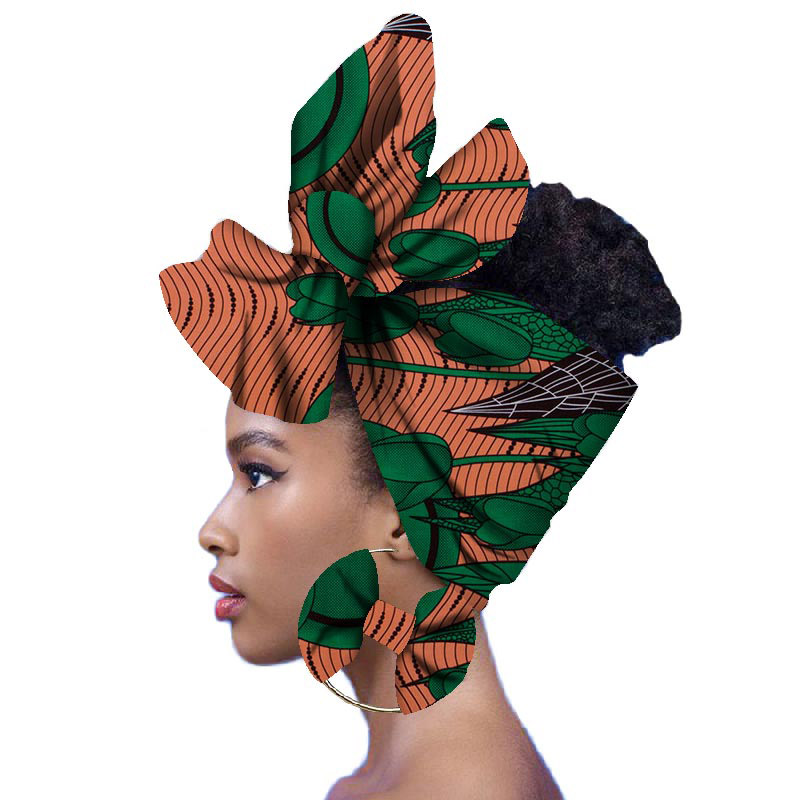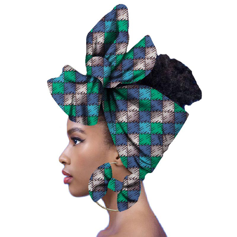 One of Hottest for Black Tote Bag South Africa - 2021 African Head Scarf And 2 Pieces earrings Headwear Wax Ankara Hairband SP018 – AFRICLIFE Detail: