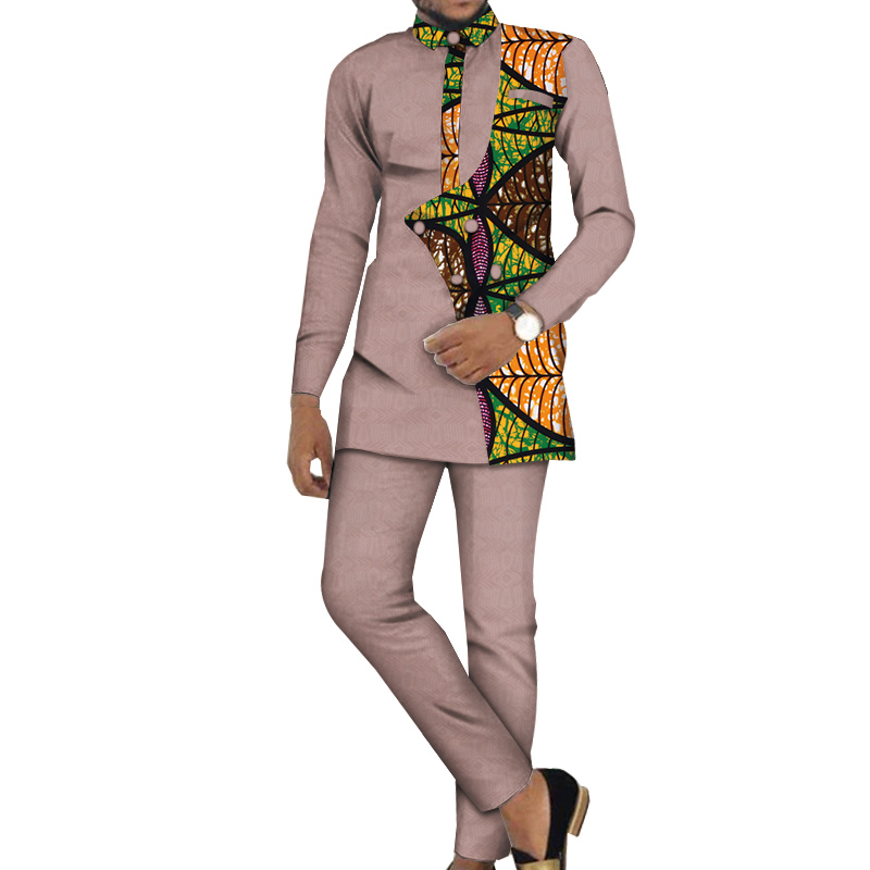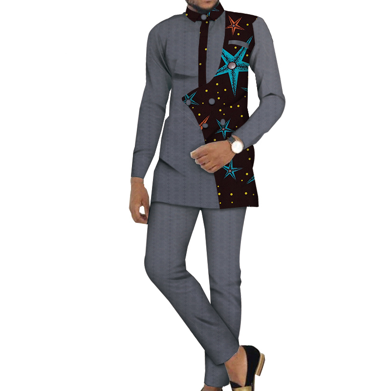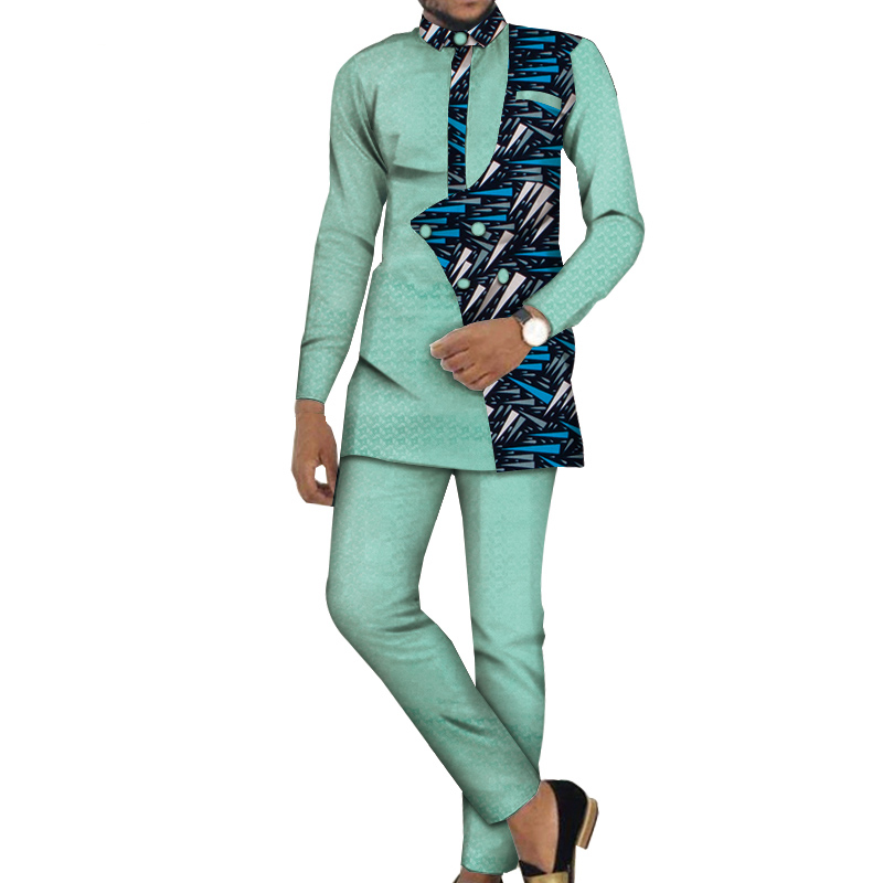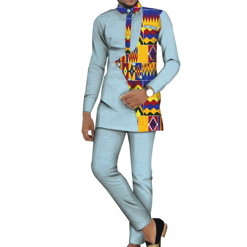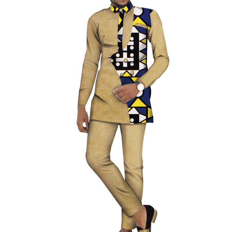 Bazin Men 2 Pieces Pants Sets African Design Clothing African Men Clothes Casual Men Top Shirts and Pants Sets WYN981