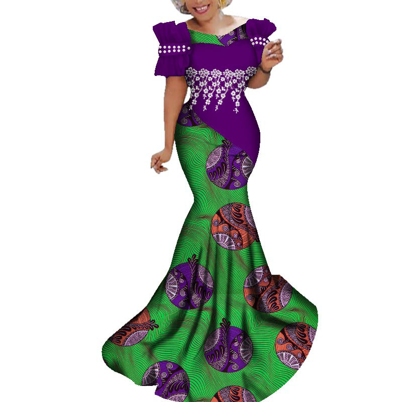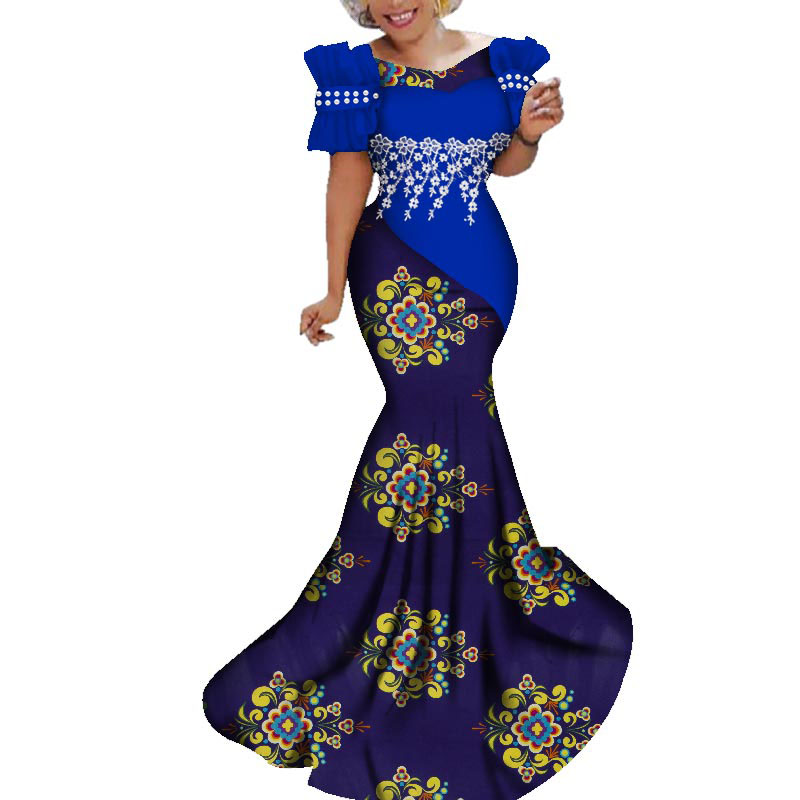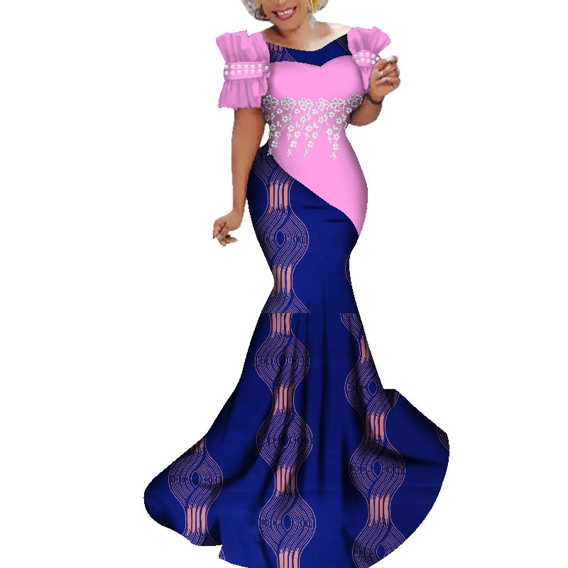Fashion African Dress Women Long Party print with White Pearl Lace Flower WY284