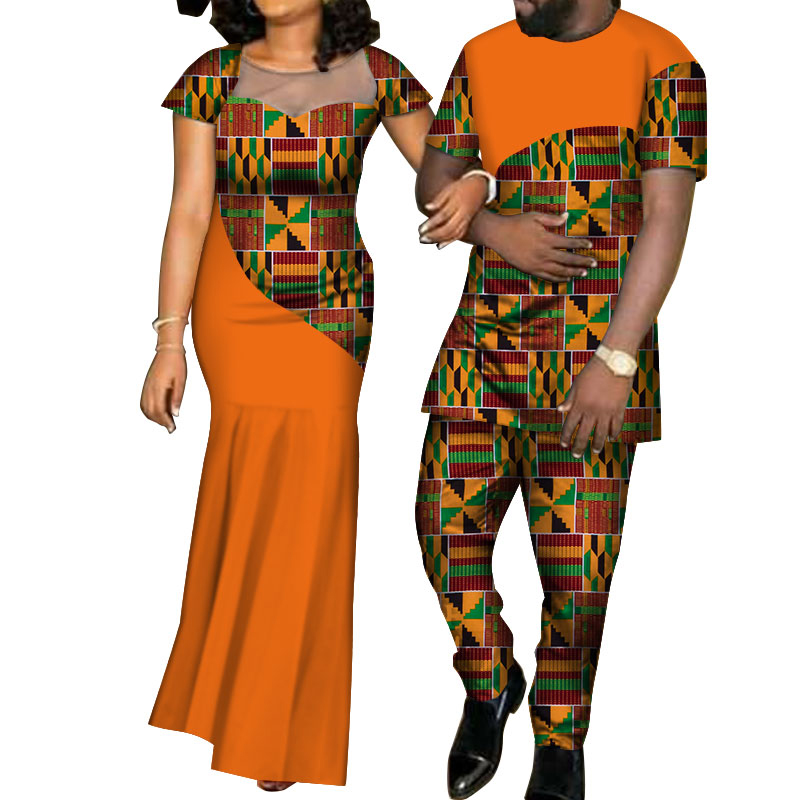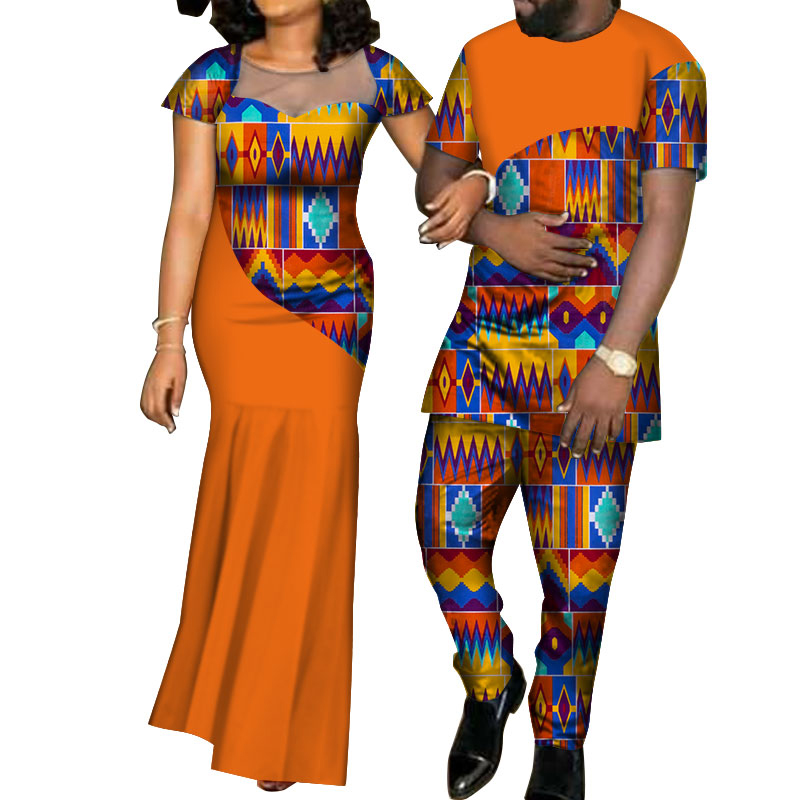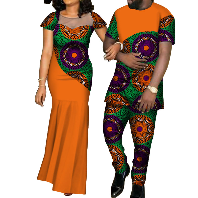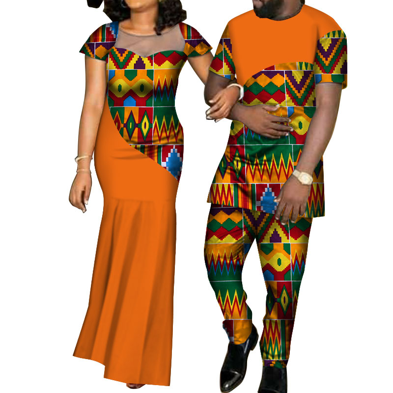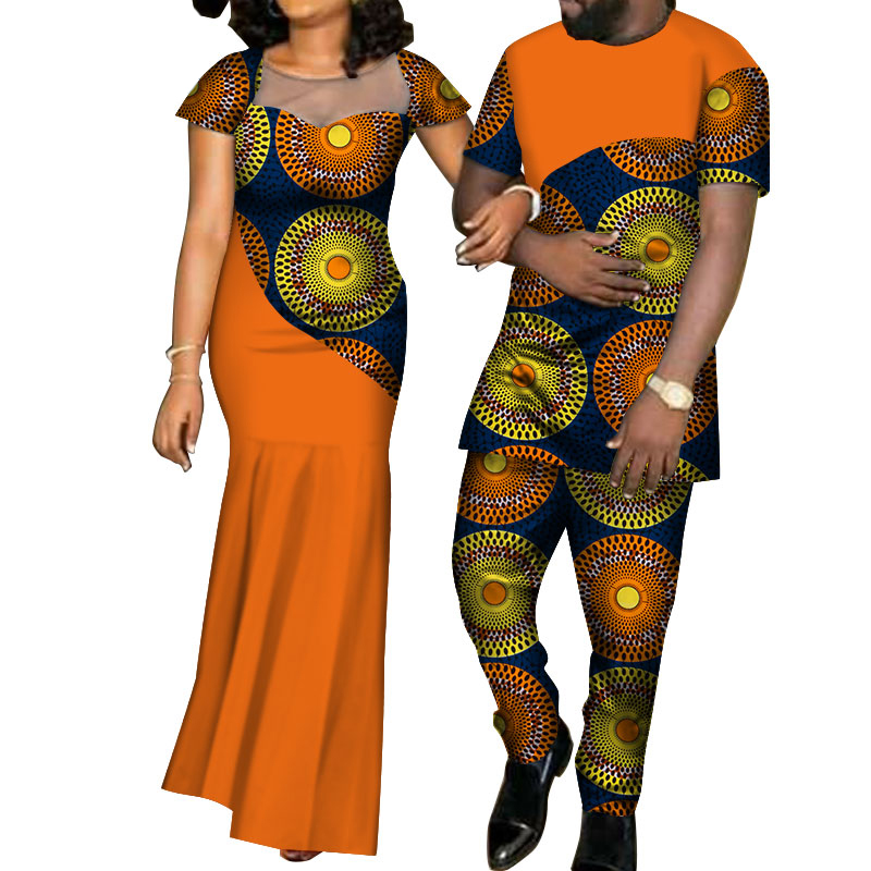 Reliable Supplier African Wear For - African Lover Couples Clothes Print for Women Bazin Mens Shirt and Pants Sets Yarn Dress with WYQ126 – AFRICLIFE