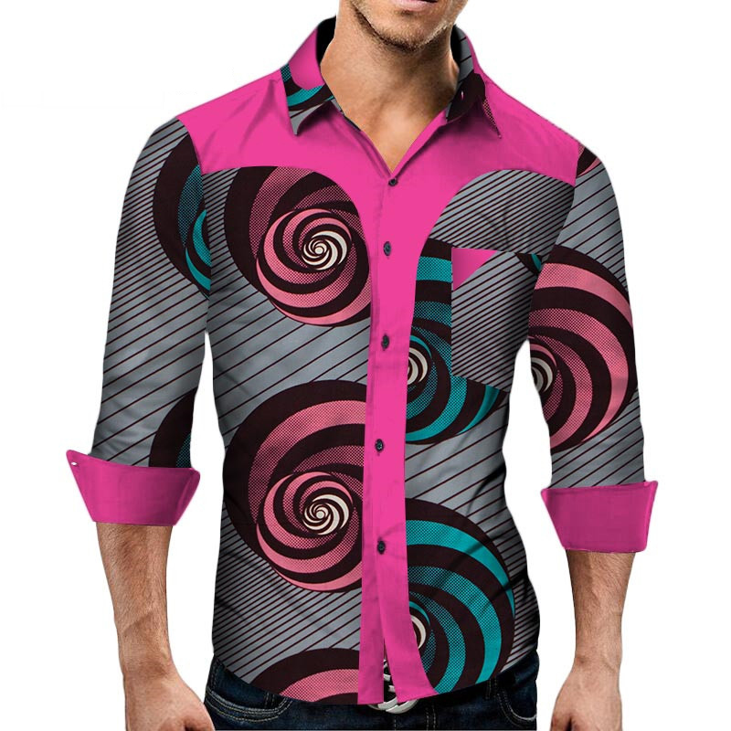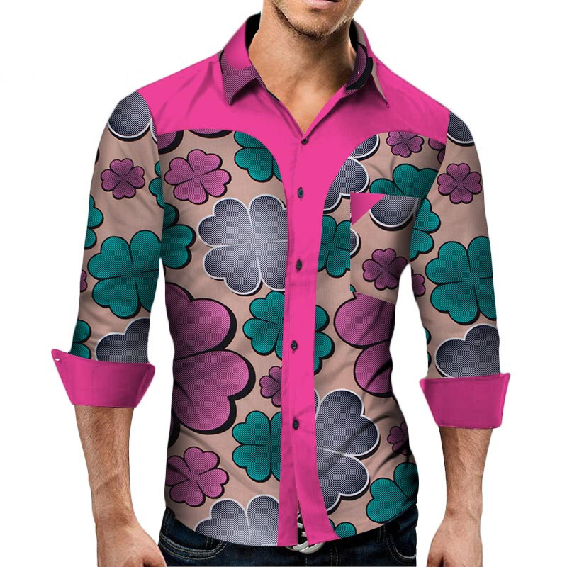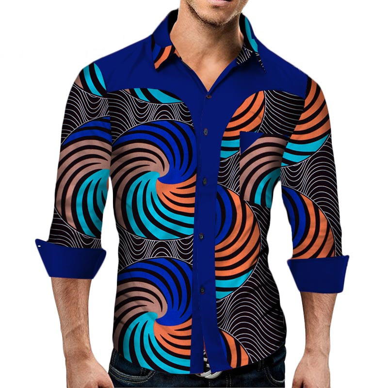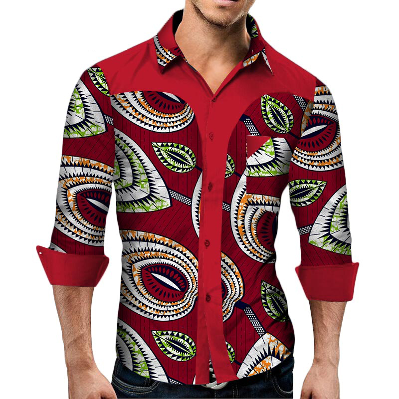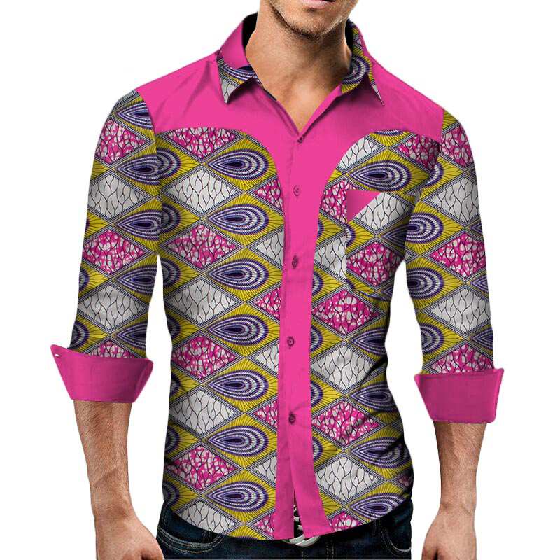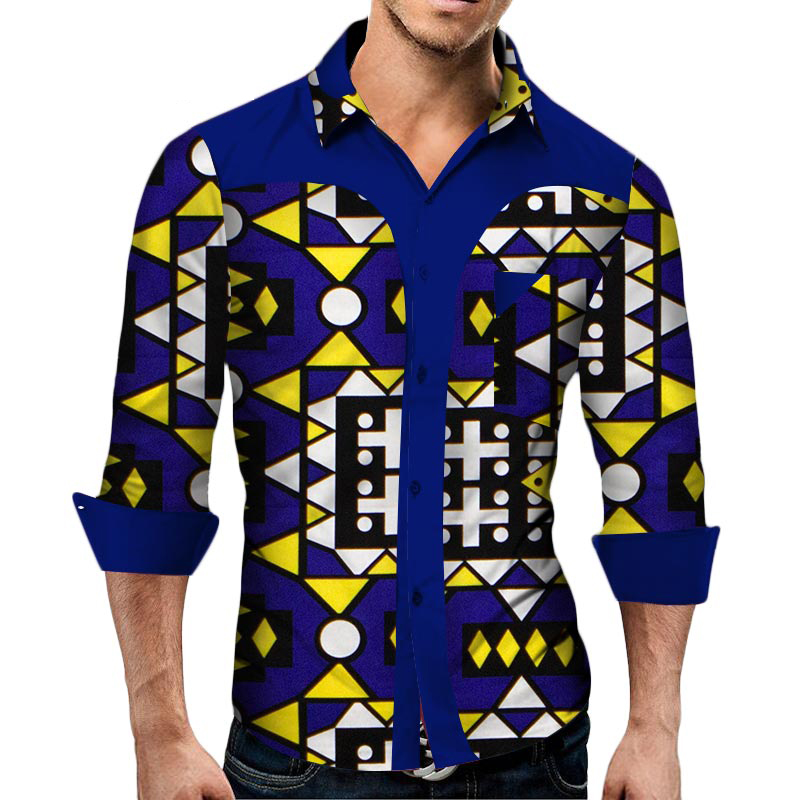 Plus Size African Print Shirt for Men Long Sleeve Dashiki Tops African Clothes Patchwork Casual Style Men Shirt WYN349