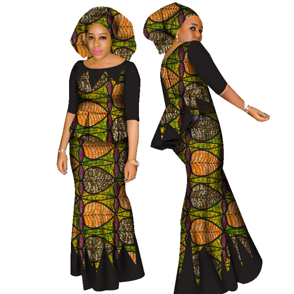 African Women skirt Set Dashiki Cotton Crop Top and Skirt Set+Head Scarf Good Sewing Women Suits WY1437