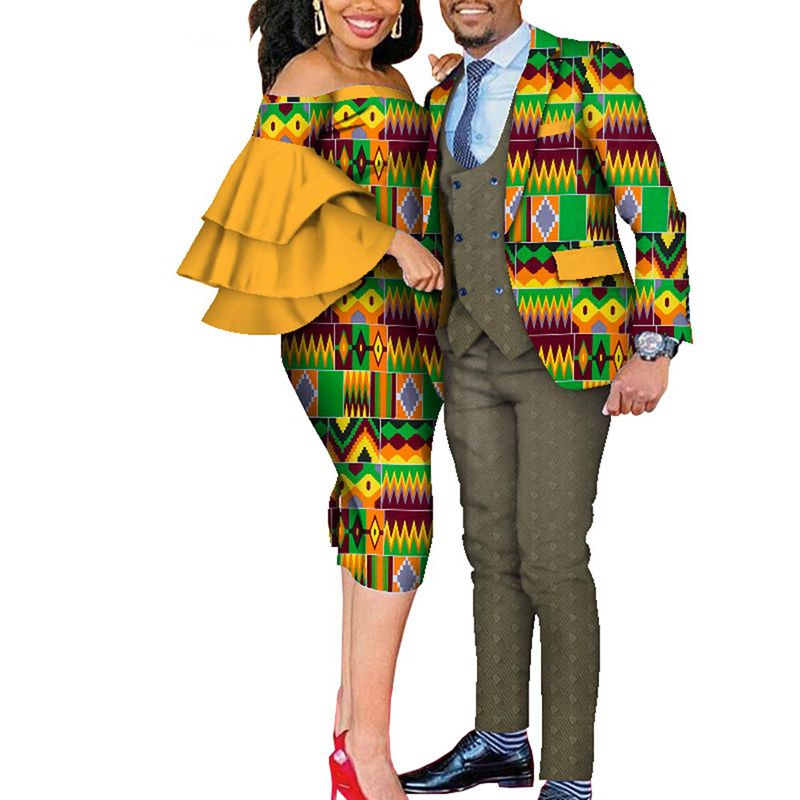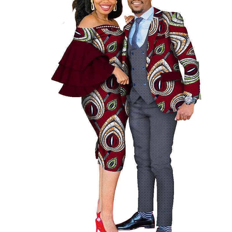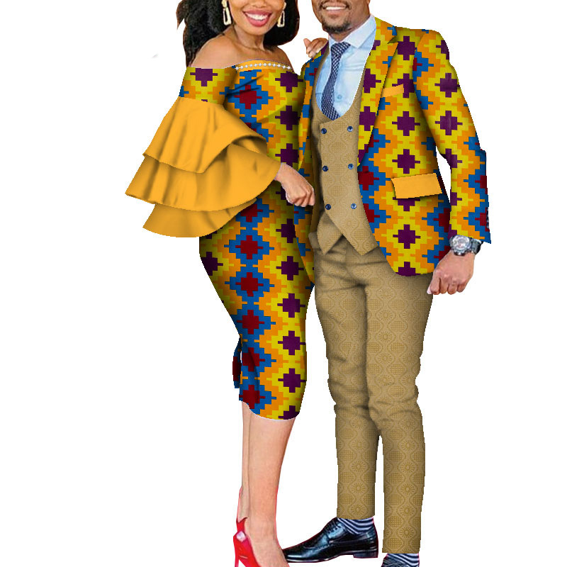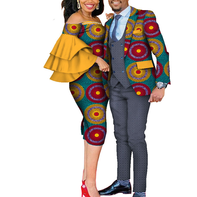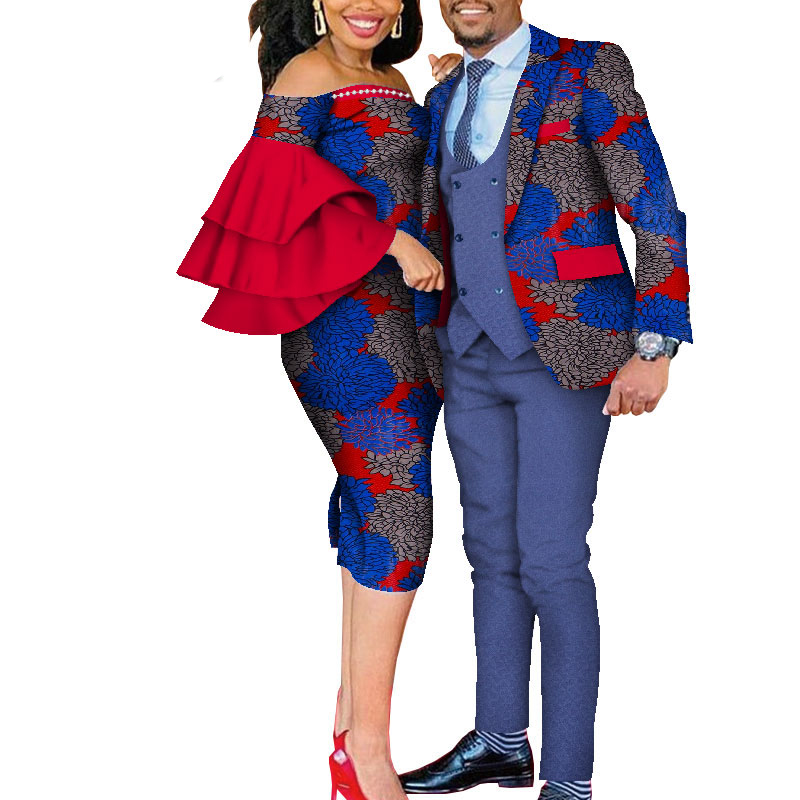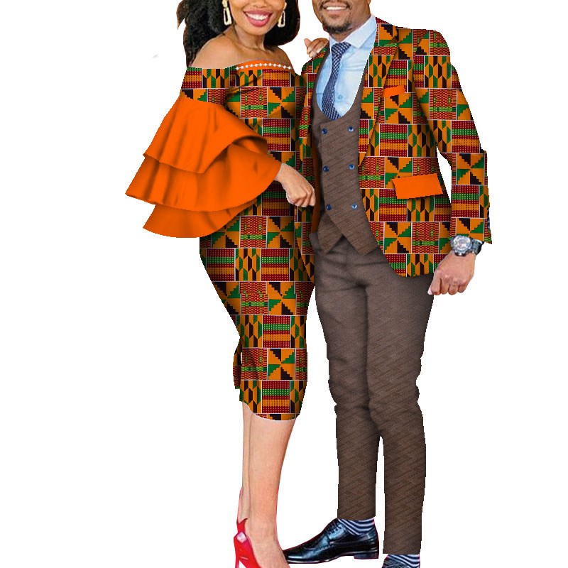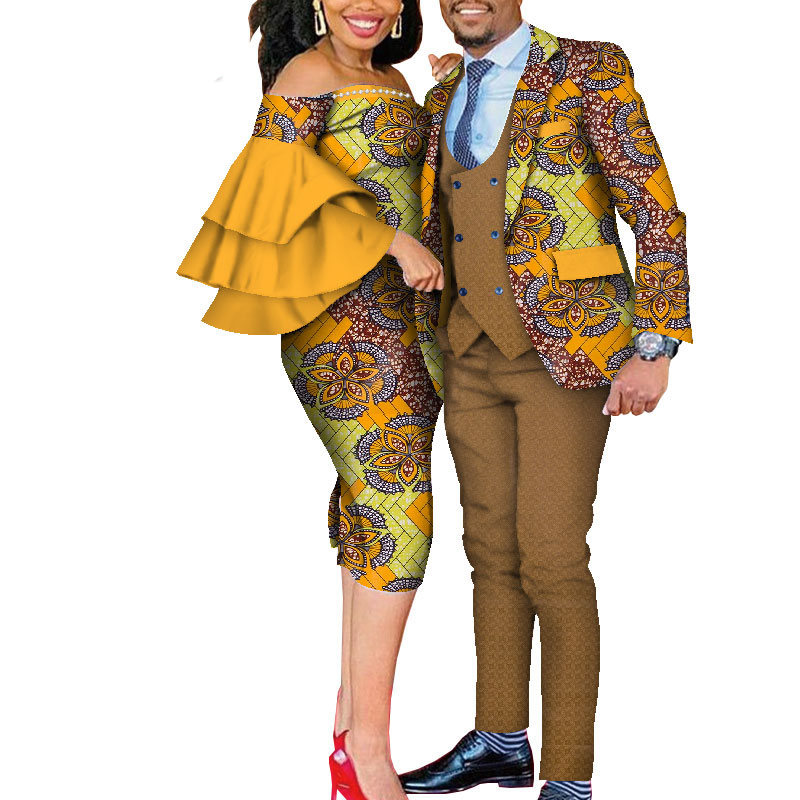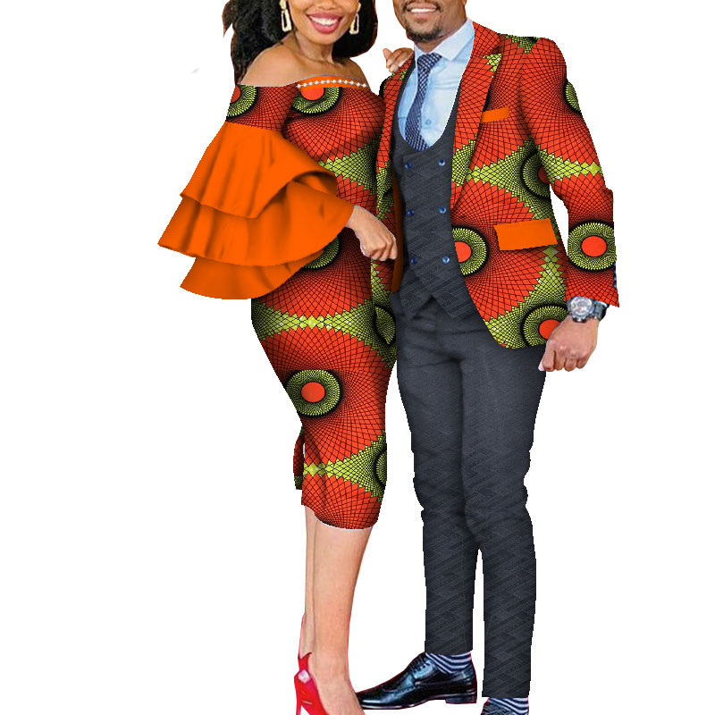 1.The African-style couple outfits are particularly eye-catching, showing the romantic love of couples from the aspects of color and pattern design.